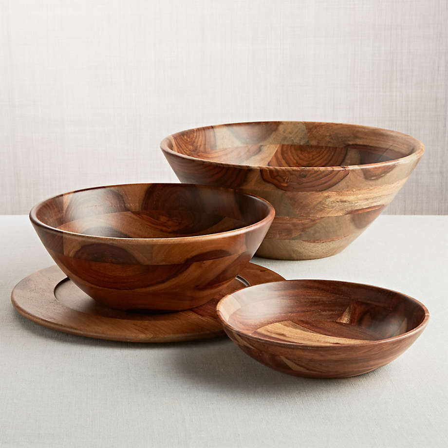 Warm up the table with our beautifully grained wood charger. Perfect for chic dinner parties and family feasts, our charger dresses up any meal when placed under a dinner plate. Cut from seasoned wood, each charger is turned to create its clean, rimmed shape.